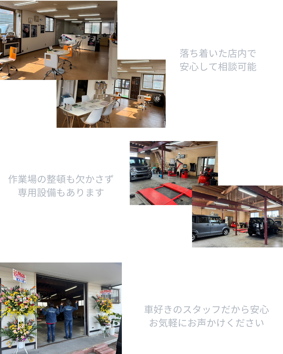「遊びに来たよー」と、みなさんに寄ってもらえる車屋さんを目指しています。